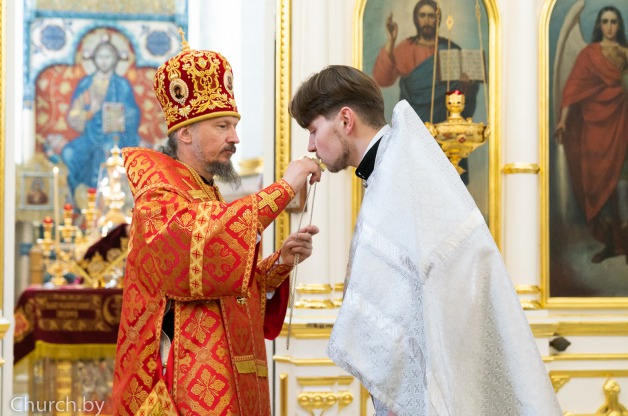 За Божественной литургией Его Высокопреосвященство совершил иерейскую хиротонию студента 5-го курса Минской духовной семинарии диакона Владислава Кулака.