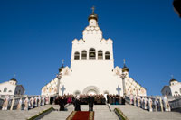 На ступенях храма-памятника выступил сводный хор в составе Государственной академической хоровой капеллы Беларуси им. Г. Ширмы, Государственного камерного хора Беларуси, хора Белтелерадиокомпании и хора Белорусской государственной академии музыки — всего около 200 человек.
