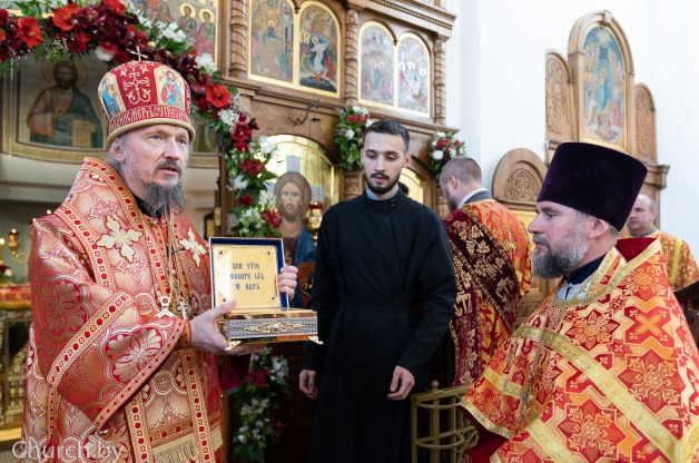 Его Высокопреосвященству сослужили секретарь Минской епархии протоиерей Андрей Волков; благочинный 3-го Минского городского округа, настоятель Александро-Невского храма Минска протоиерей Николай Коржич; настоятель Воскресенского храма протоиерей Евгений Свидерский и клирики храма.