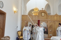 Его Высокопреосвященству сослужили Секретарь Минского Епархиального управления протоиерей Николай Коржич, настоятель прихода протоиерей Игорь Галаков и духовенство храма. Проповедь перед Причастием произнес клирик прихода иерей Виталий Кубарь.